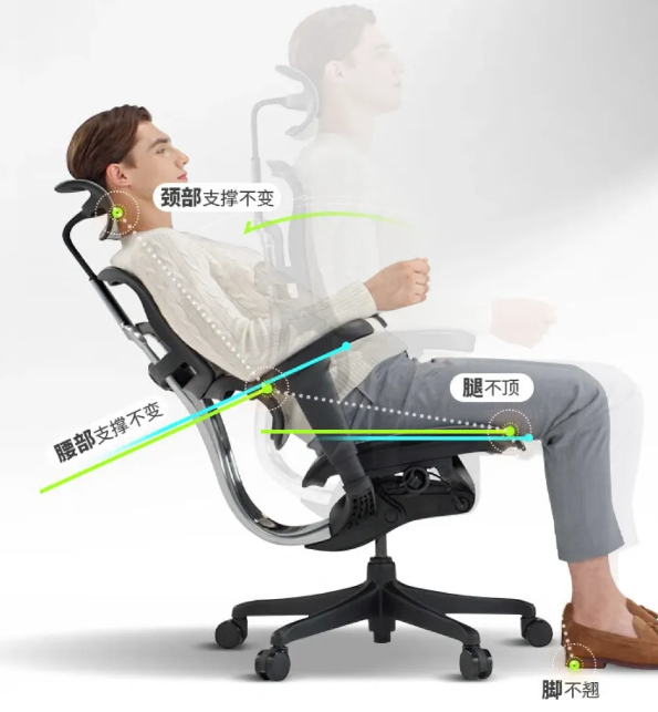 第二步:动态支撑跟不跟?这是核心测试。模拟真实办公:1)身体前倾够鼠标,感受腰后支撑还在不在;2)慢慢后仰放松,支撑是持续平稳,还是突然消失;3)左右轻微转身,腰侧有没有被稳住的感觉。好椅子应该像懂你的伙伴,你动它随,始终托得住。