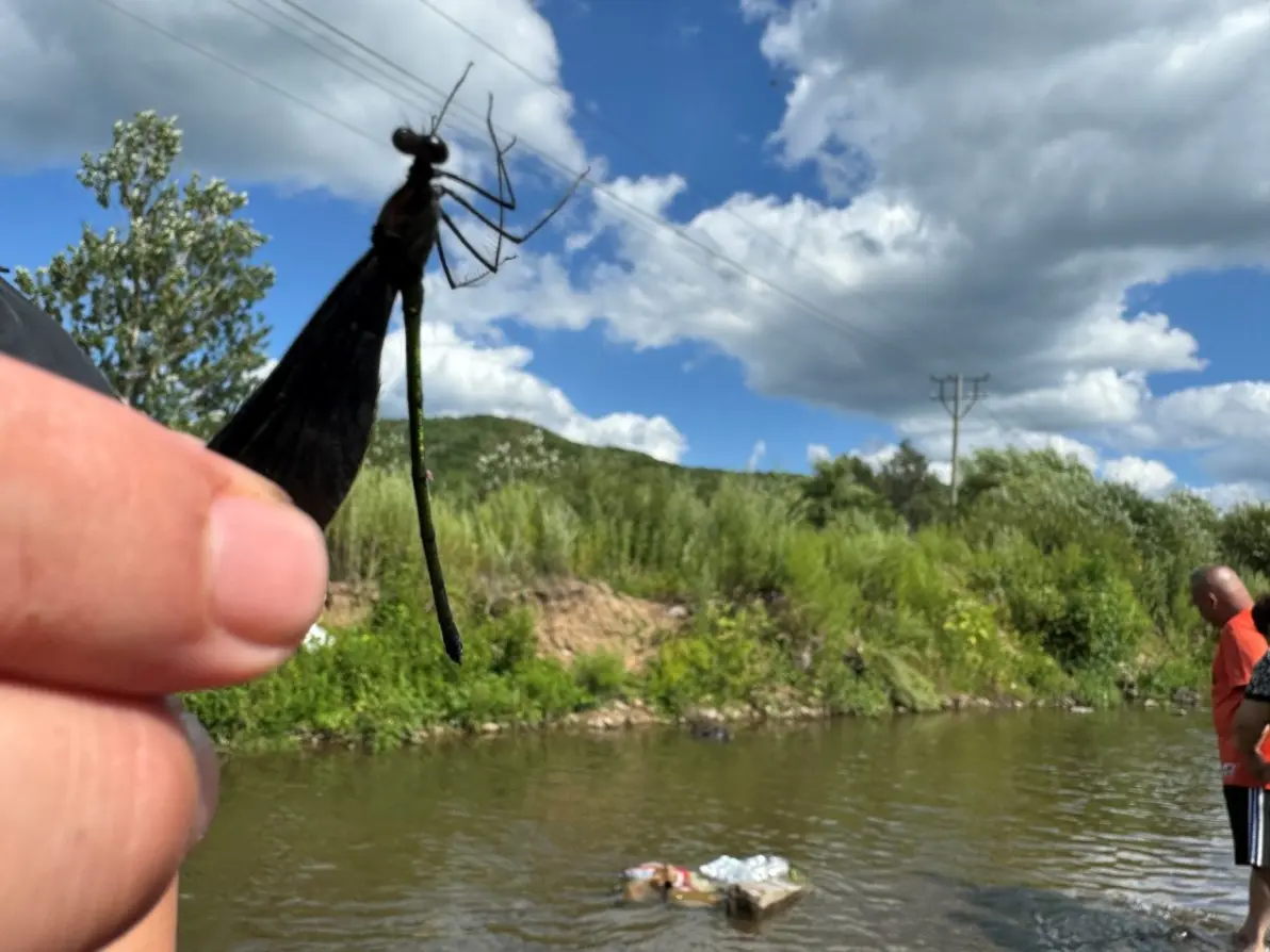 大哥用渔网没抓到鱼,反倒抓到了蜻蜓,这不海和空搞的有点倒置了吗,反正大哥开心就行了!