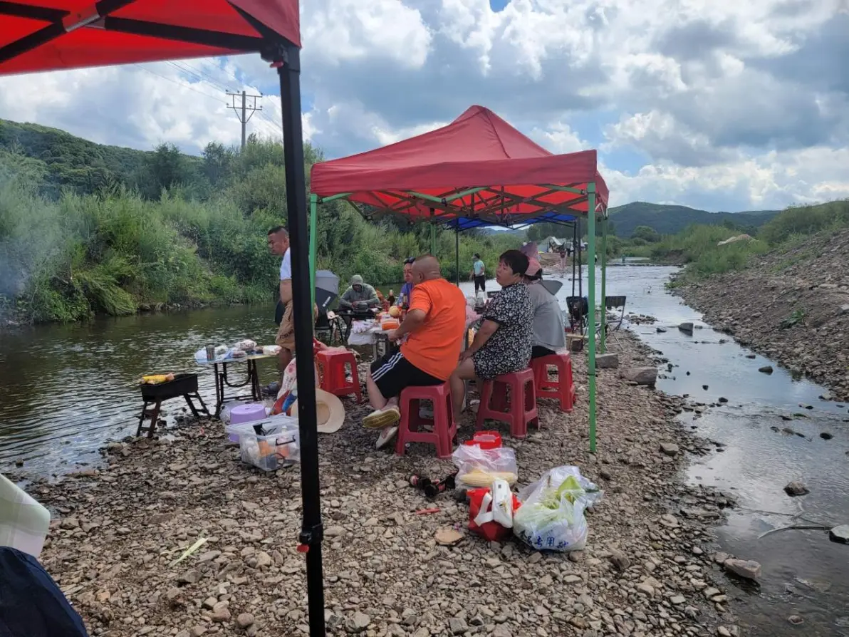 左右,我们都有邻居,左边一群大哥玩的比较斯文,煮茶,文玩,干聊天;右边一群大哥就很热情,一会给我们点吃的,一会过来要一起喝一口,我们东北人都是这样,好客,好爽,好交!