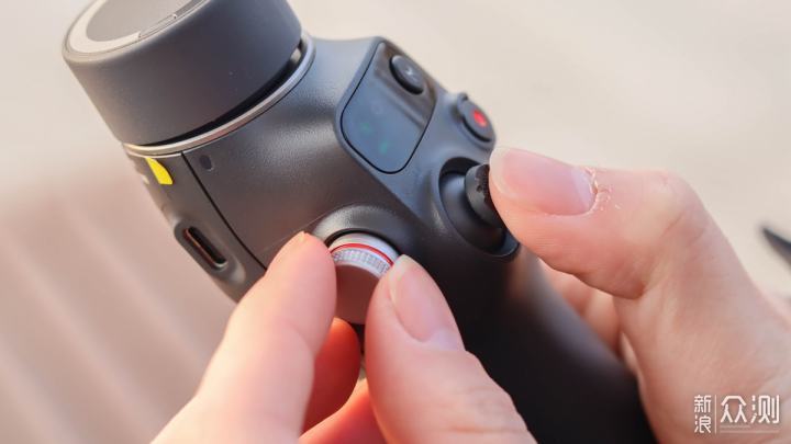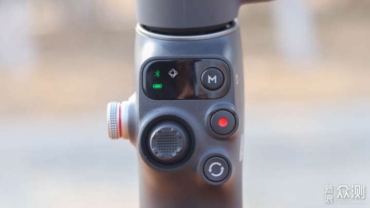 其实 ,这款稳定器如果想要玩的好,还是有一定的学习成本的。比如侧面的波轮键,通过单击、双击或者长按就能在变焦、手动对焦、补光灯色温以及亮度调节之间切换,通过波轮就能无极调节,熟练之后确实好用且方便,但是熟练运用还是要多多练习。