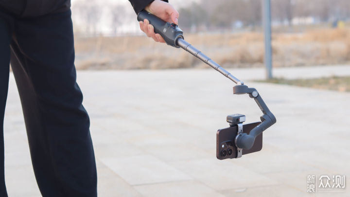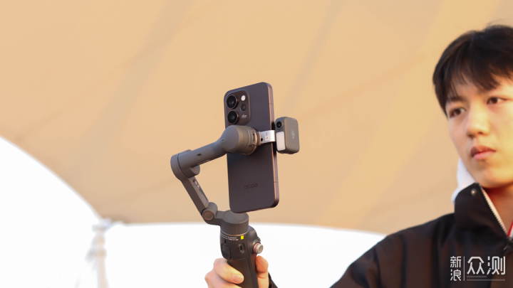 在这款设备上,不仅可以感受云台三轴增稳防抖技术相比手机防抖的“大不同”,还能通过原生系统级追踪‌(Apple DockKit + 鸿蒙智能追焦)、多功能追踪模块或者全新的360°流畅环拍来解锁更为灵活的跟拍技能,并且自带延长杆和三脚架,还能收音和补光一体,让我们可以更轻松地完成专业级人宠跟拍、直播、视频会议等场景创作。其核心价值,是将“专业设备”和“专业运镜”的操作门槛,降到了“随手一贴”的极致便捷。