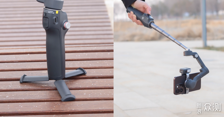 ‌内置三脚架和延长杆,巧妙的设计让拍摄装备更轻量化,对于喜欢自拍合影、直播固定位或者低角度运镜都能满足需求,而且完全不需要再额外购买配件了。