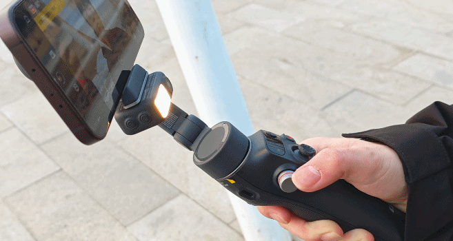 ‌三轴云台采用的是DJI第七代增稳技术,号称无损防抖。在实际的实用中,不管是固定机位还是移动机位,手机自身防抖与云台协同效果叠加之后,确实画面更加顺滑,只要手臂不过分的抖动,最终画面都非常稳定,确实加成明显。