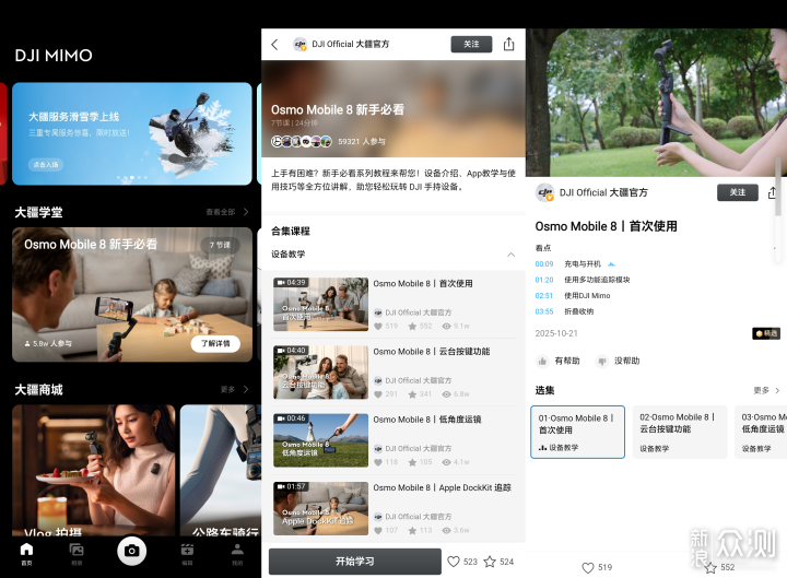 好在大疆的产品学习过程都非常友好,除了可以通过App的新手指导掌握之外,也能通过视频课程进行练习。