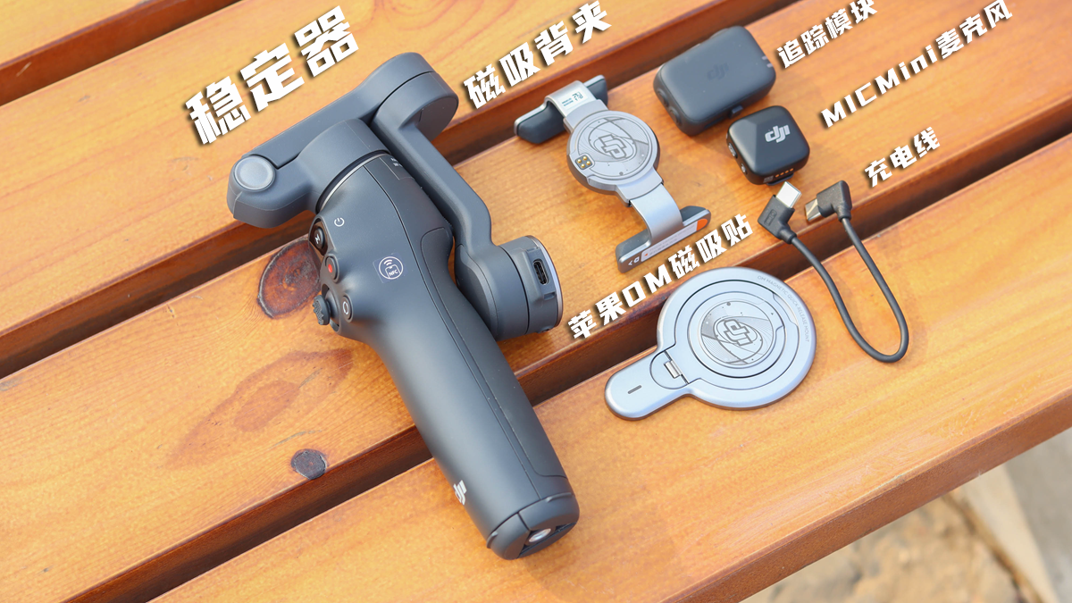 首先就是这款稳定器折叠之后非常小,而且370g重量也很轻,即便是选配了追踪模块和Mic也丝毫不影响便携。