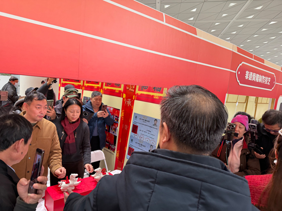 而真正的创新,在于让经典“流动”起来。在非遗年货购物月的现场,匠人们以“双福”为灵感源泉,进行了生动实践:景德镇的陶瓷大师将书法笔触烧制于釉下,制成寓意“马上有福”的典雅礼器;湘西的苗绣传承人以针代笔,用五彩丝线将“福”字与蝴蝶、牡丹等吉祥图腾绣于服饰之上,古老纹样与现代设计相映成趣。这些“双福文创”让消费者眼前一亮——原来,深邃的非遗可以如此贴近日常生活,一份“带得走的福气”就是最特别的新年礼物。
