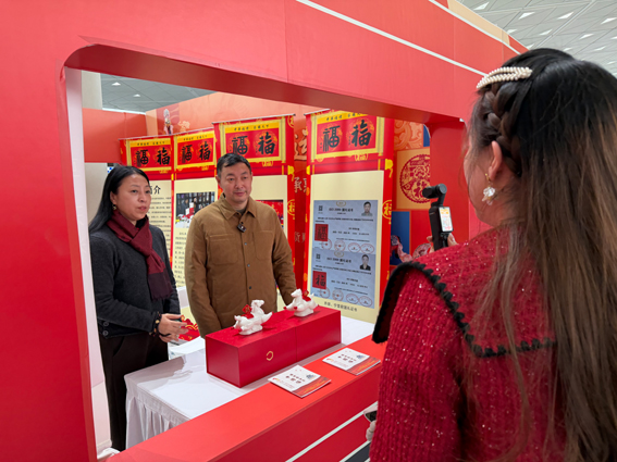 在2026年2月11日“轨道上的京津冀”春节文化惠民活动的热闹市集上,一对特别的“福”字吸引众人驻足。它们并非普通年画,而是由国礼艺术家乔领、宁雪君创作的“书法双福”。如今,这份曾作为国家礼物赠予众多各国重要外宾的珍贵墨宝,正走下艺术高阁,与陶瓷、苗绣、书画等非物质文化遗产深度结合,变身一系列可收藏、可使用的国潮新品,为新春市场注入浓浓文化味。