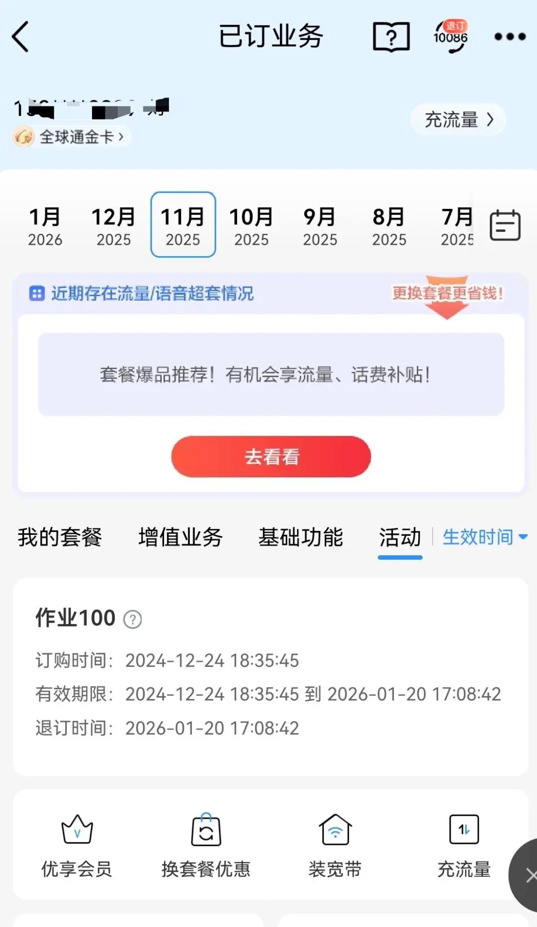 机主刘先生告诉九派新闻,经查询得知,该业务于2024年12月24日开始生效,已经连续13个月,每月扣除10元费用。