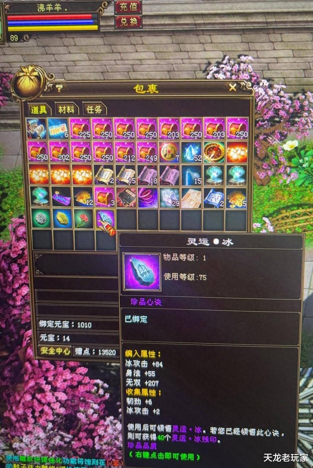 来自【战天门】服务器的一位天山玩家,今天运气极佳开了一个灵运·冰——这玩意能值1.6万元宝!