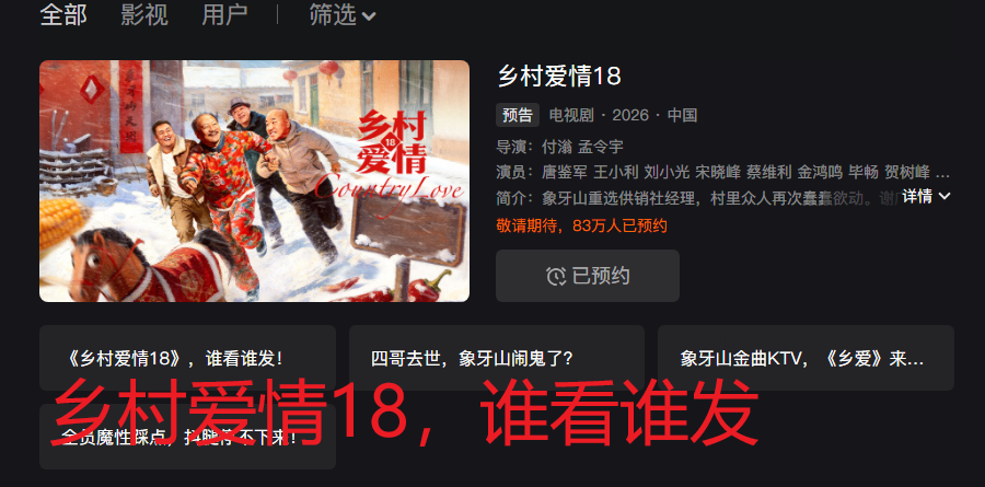 新剧看点蛮多的:赵四假死风波、谢广坤的日常作以及其他象牙山村民的鸡毛蒜皮,家长里短都是期待满满。
