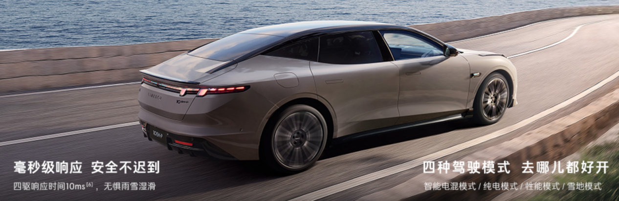 这一产品策略的可行性,根植于领克10EM-P过硬的技术实力。其所采用的EM-P智能电混系统,由1.5TEvo电混专用引擎、DHT Evo混动电驱以及后桥P4电机协同构成,系统综合最大功率390kW,综合最大扭矩755N·m,0-100km/h加速时间为5.1秒。同时,系统高效性确保了其CLTC工况亏电油耗仅4.2L/100km。尤为值得一提的是后桥P4电机,其响应速度达到10毫秒级别,可实现近乎无感的四驱模式切换,这不仅增强了驾驶动态表现,也对复杂路况下的安全性提供了实质贡献。