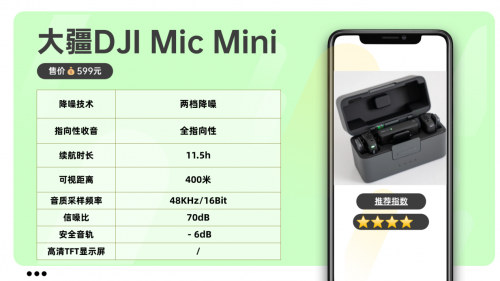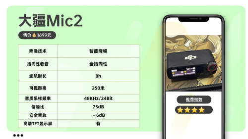 使用体验偏向实用,发射器仅21g,磨砂机身搭配弹簧背夹,夹在衣领上稳固不晃,长时间佩戴无坠感。OLED小屏虽非触控,但参数显示清晰,单键操作简单易记。24小时综合续航足够全天外拍,充电盒小巧便携,不过Micro-USB接口通用性弱于Type-C,且无内置存储,传输中断易丢失素材,更适合进阶创作者而非纯新手。