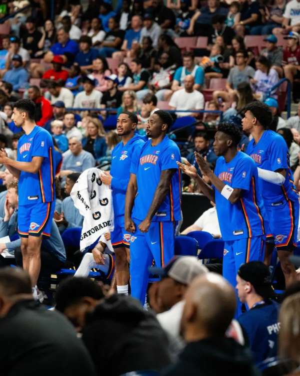 说来残暴,本场黄蜂核心包括三球、布兰登米勒、迈尔斯布里奇斯全部上场,然而雷霆这边直接让出了亚历山大、杰威、霍姆格伦、多尔特、哈滕和卡鲁索一套冠军首发+最佳第六人阵容。
