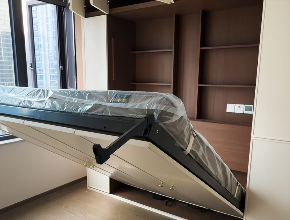 等到晚上准备睡觉时,将墨菲床直接给放下来就行,放上床上物品就可以直接入睡。