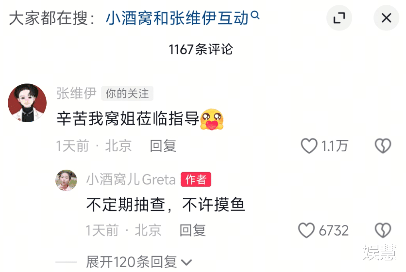 张维伊还现身小酒窝该条视频的评论区,留言写道:“辛苦我窝姐莅临指导。”