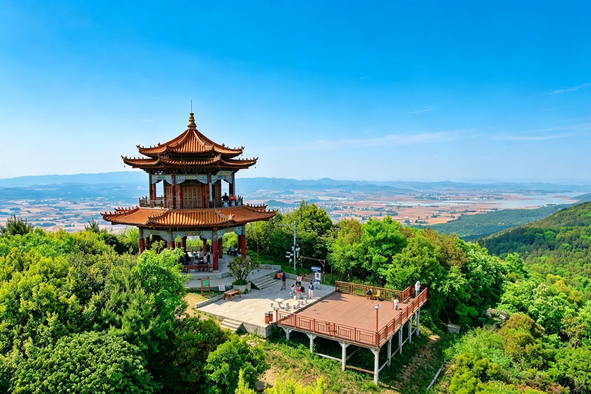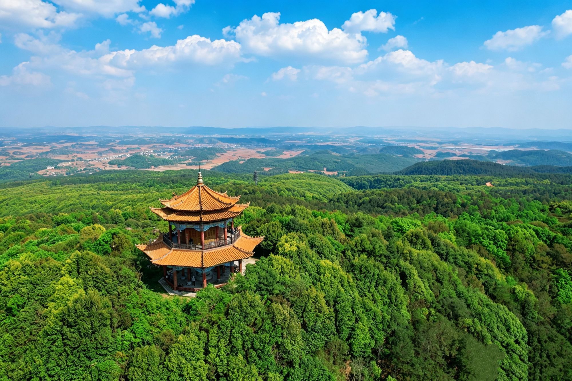 马雄山山巅的观景亭可以俯瞰整个珠江源风光,亭子古朴雅致,共二层。