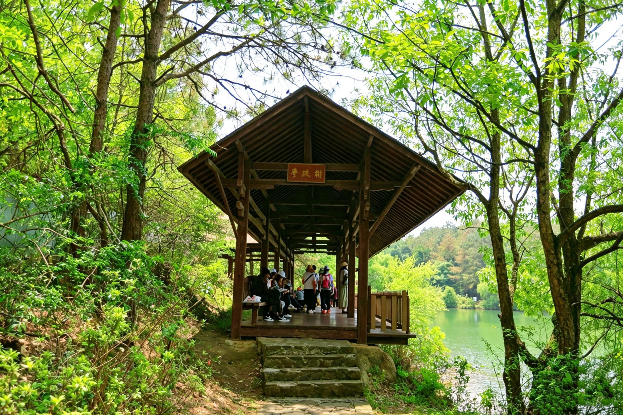 景区内有茂盛的原始森林和壮观的喀斯特地貌,徒步而行,绿荫环绕,溪流碧绿。木质长廊被参天绿树环抱,走累了不妨在这里歇歇脚,眺望湖景,听林间鸟鸣,闻草木清香。