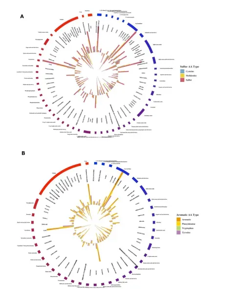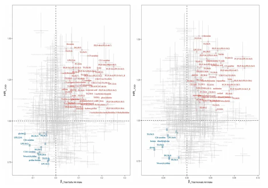 图1 响应硫代氨基酸和芳香族氨基酸摄入的代谢物及回归系数