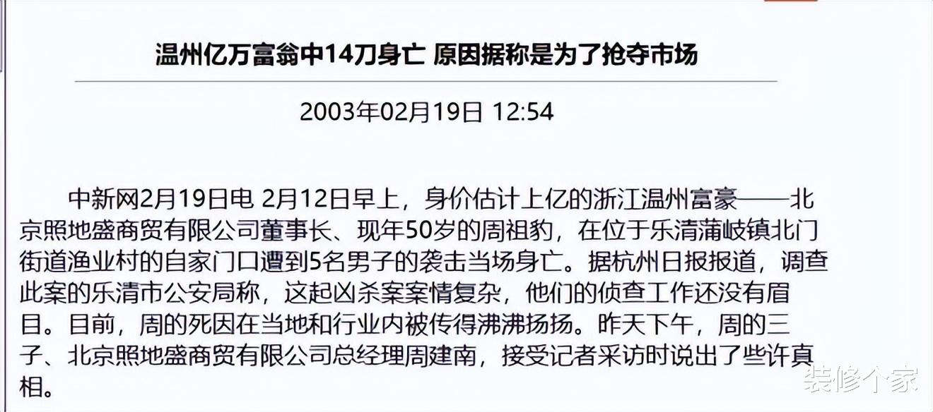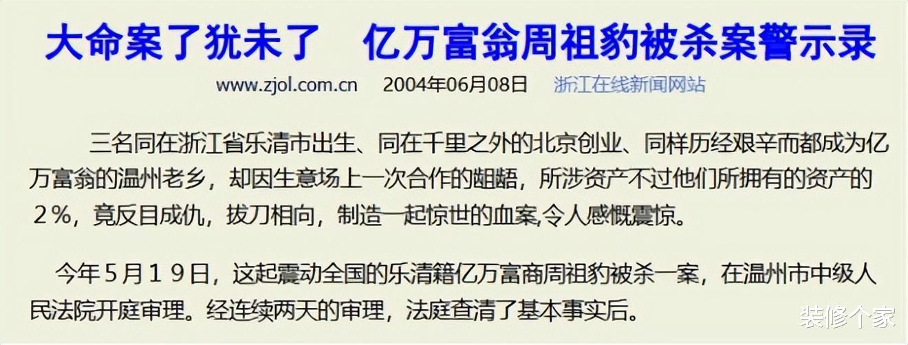 2003年,各大官方媒体和地方喉舌都重点报道了一件事情——温州亿万富翁周祖豹被杀一案。此事发生后,媒体便迫不及待地将其放到了头版头条,还对此事进行种种猜测。