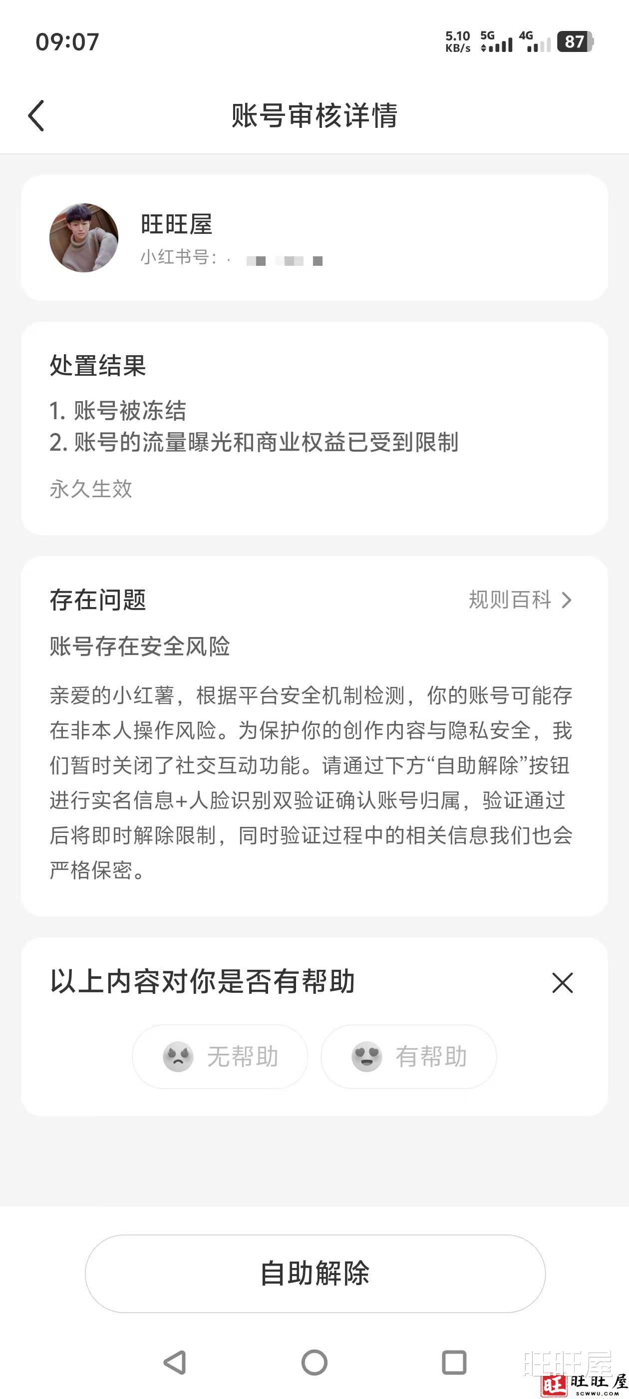 针对此问题,旺旺屋尝试向小红书app备案公司:行吟信息科技(上海)有限公司,投诉反映给上海网信办,结果得到的回复是,建议你通过实名认证进行解除封禁。