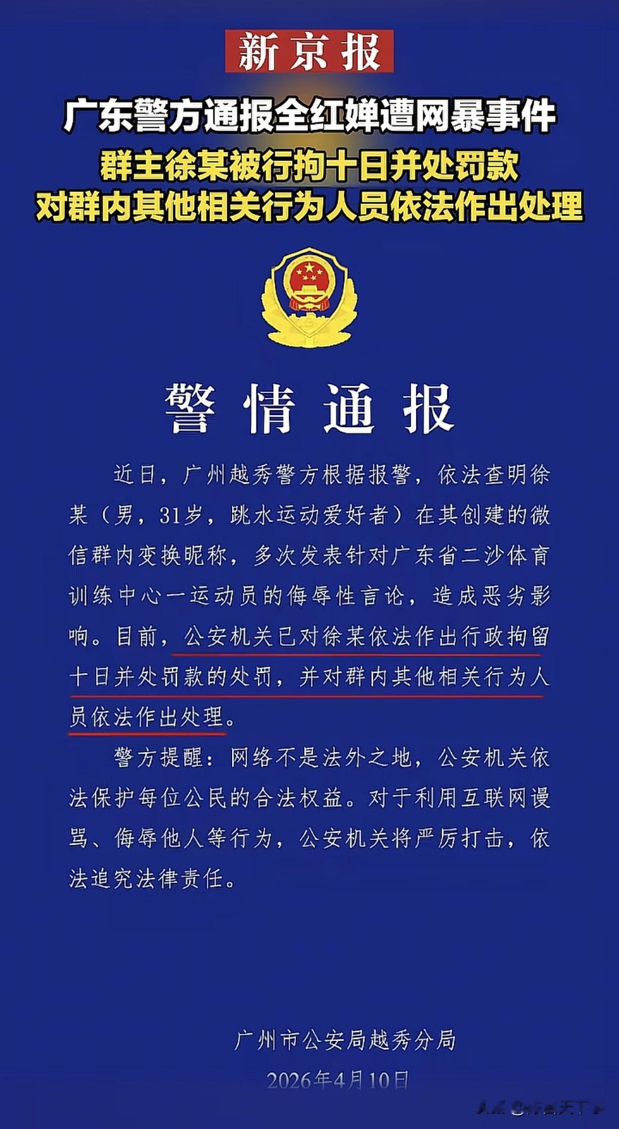 要知道,婵妹作为国际级运动健将,她的声誉是不容诋毁的,所以她选择报警一事也很快就得到重视。