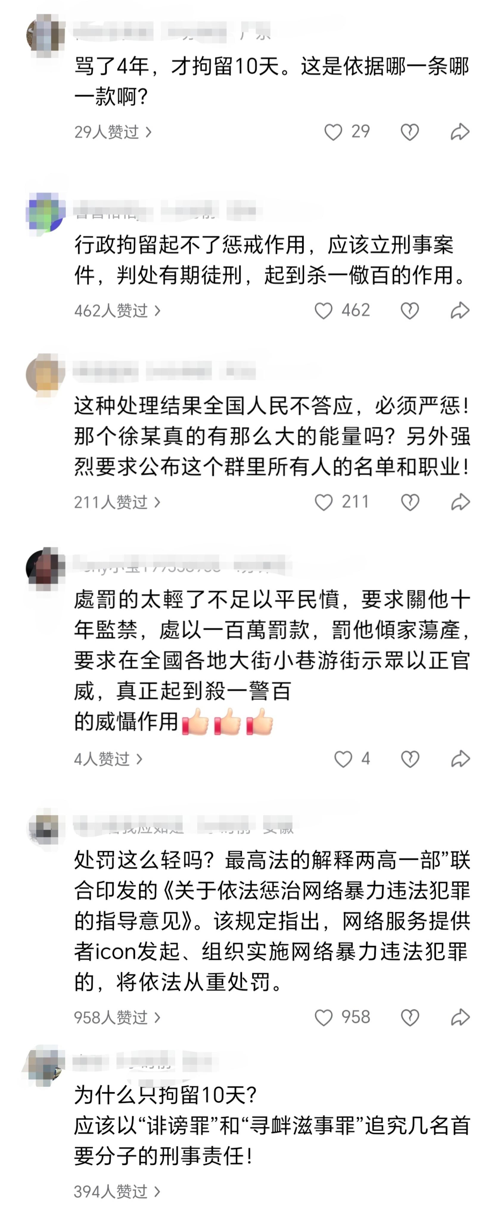 虽然这个结果是好的,但不少网友都觉得罚轻了,且不说婵妹获得多少荣誉,就说他诋毁他人长达4年这么长的时间,都不止拘留10日和罚款了。