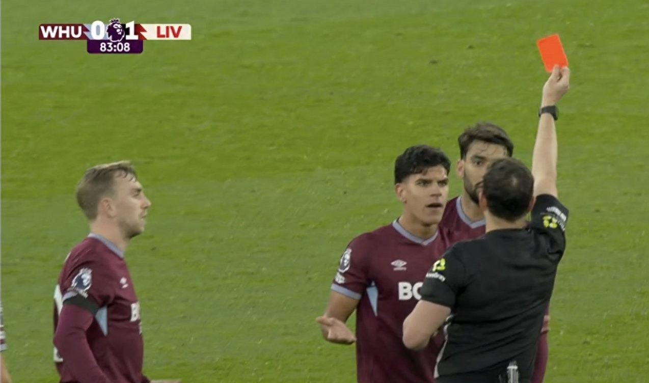 在11月30日英超第13轮西汉姆联主场0比2不敌利物浦的比赛中,巴西中场卢卡斯·帕奎塔因连续两张黄牌被罚下场,赛后引发广泛争议。