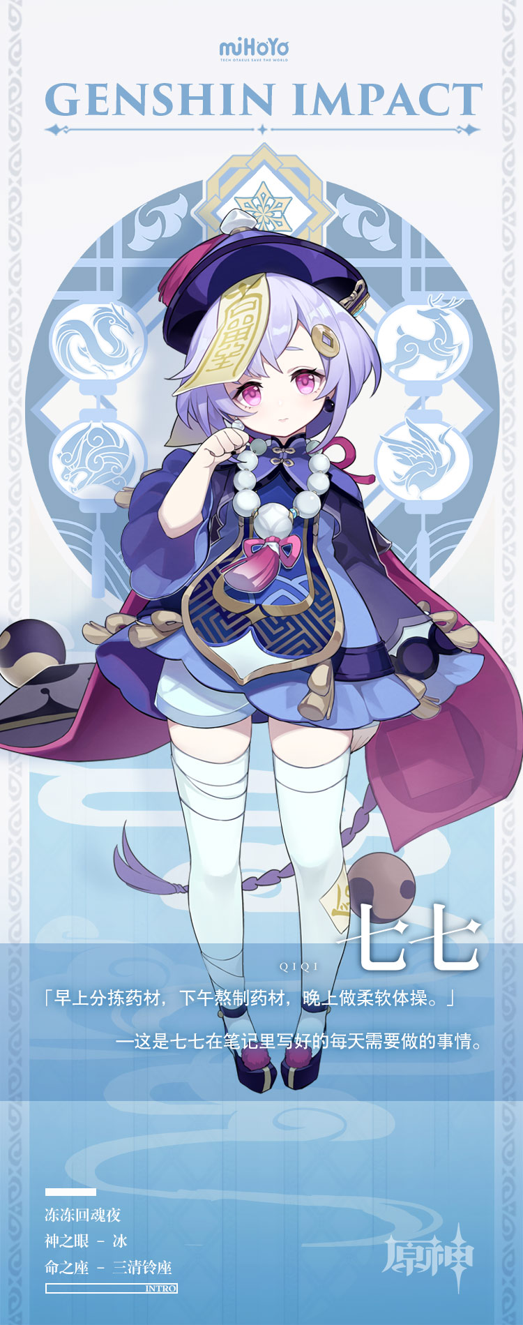 今天推荐的COSPLAY作品来自手机游戏《原神》中的5星冰系角色:七七。