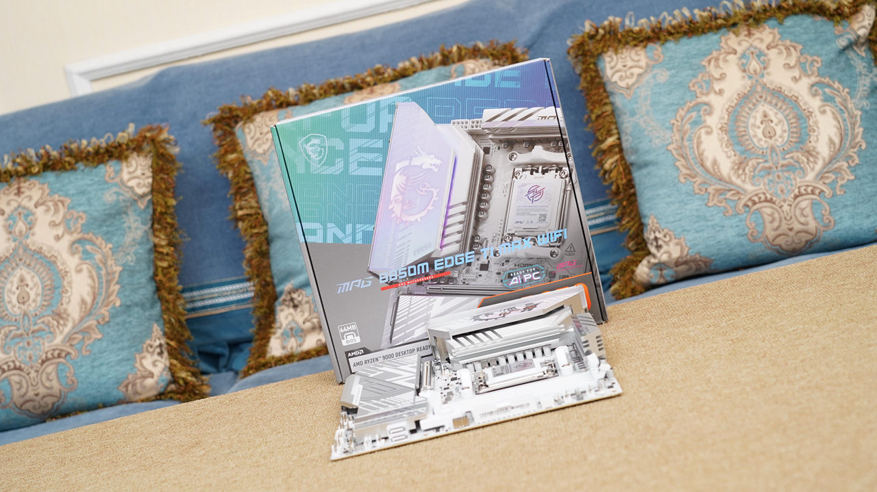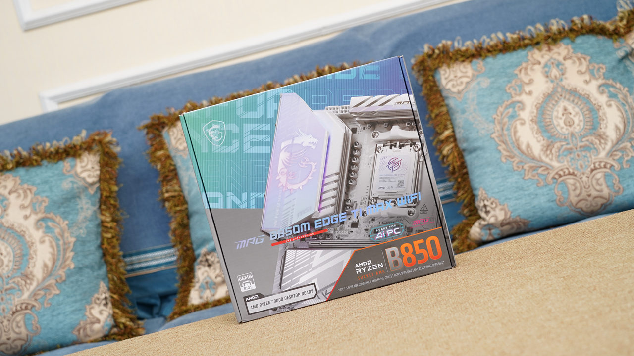 不过和I家选主板的逻辑不同,尽管9850X3D是目前最强游戏CPU,但由于其功耗并不高,所以并不需要搭配最顶级的X870E或X870主板,一块做工扎实的B850即可满足需求。这不,正好三哥有幸拿到了微星家的MPG B850M EDGE TI MAX WIFI刀锋钛主板,该主板采用银白色主色调,颜值出众;8层服务器级2oz加厚铜PCB搭配14+2+1相供电设计,即便满足旗舰级的9950X3D也不在话下;主板的扩展性也非常丰富,1条PCIe 5.0×16插槽+4个M.2插槽+5G有线网络+WiFi7无线网络的配置即便面对一些ATX大板也毫不逊色,实乃组建MATX小钢炮的绝佳搭档之一。