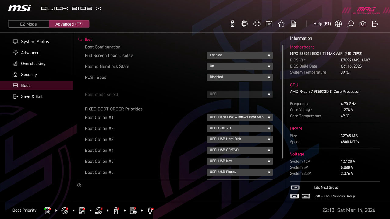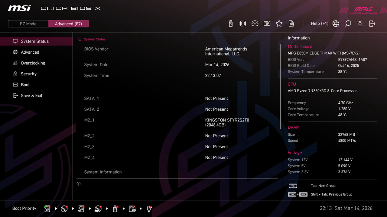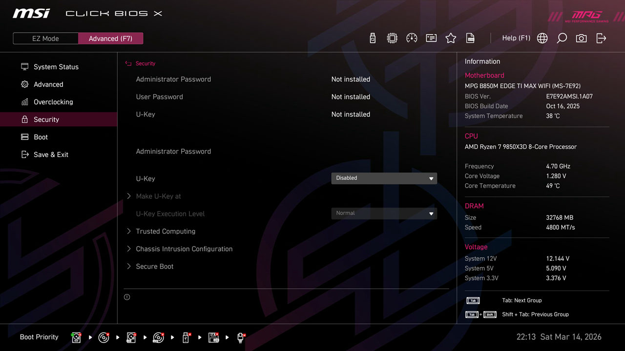 微星 MPG B850M EDGE TI MAX WIFI刀锋钛采用了64MB BIOS,能够容纳更多的微码,即便以后升级ZEN6、ZEN7处理器也都毫无压力,玩家无需担心主板过时。