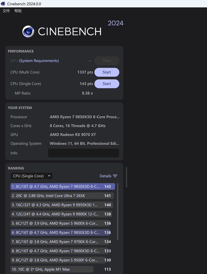 Cinebench 2024基准测试。