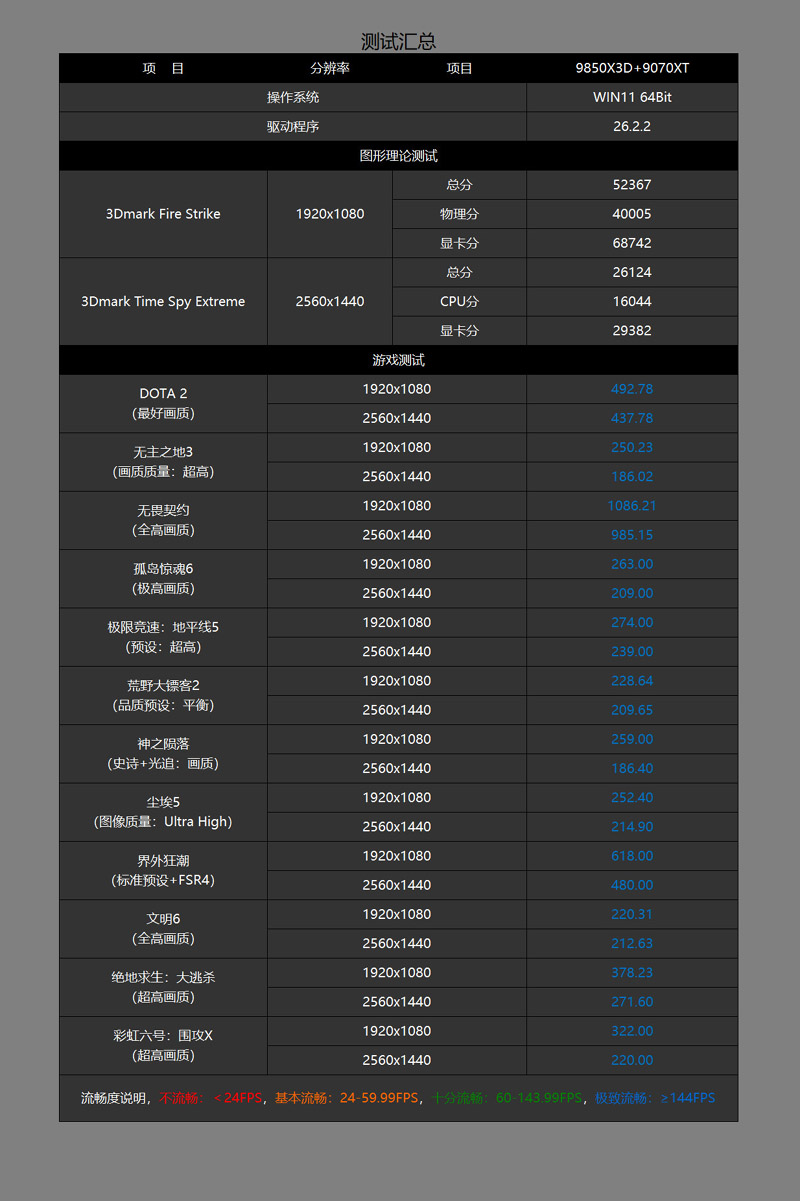 游戏测试部分就直接上汇总图吧。