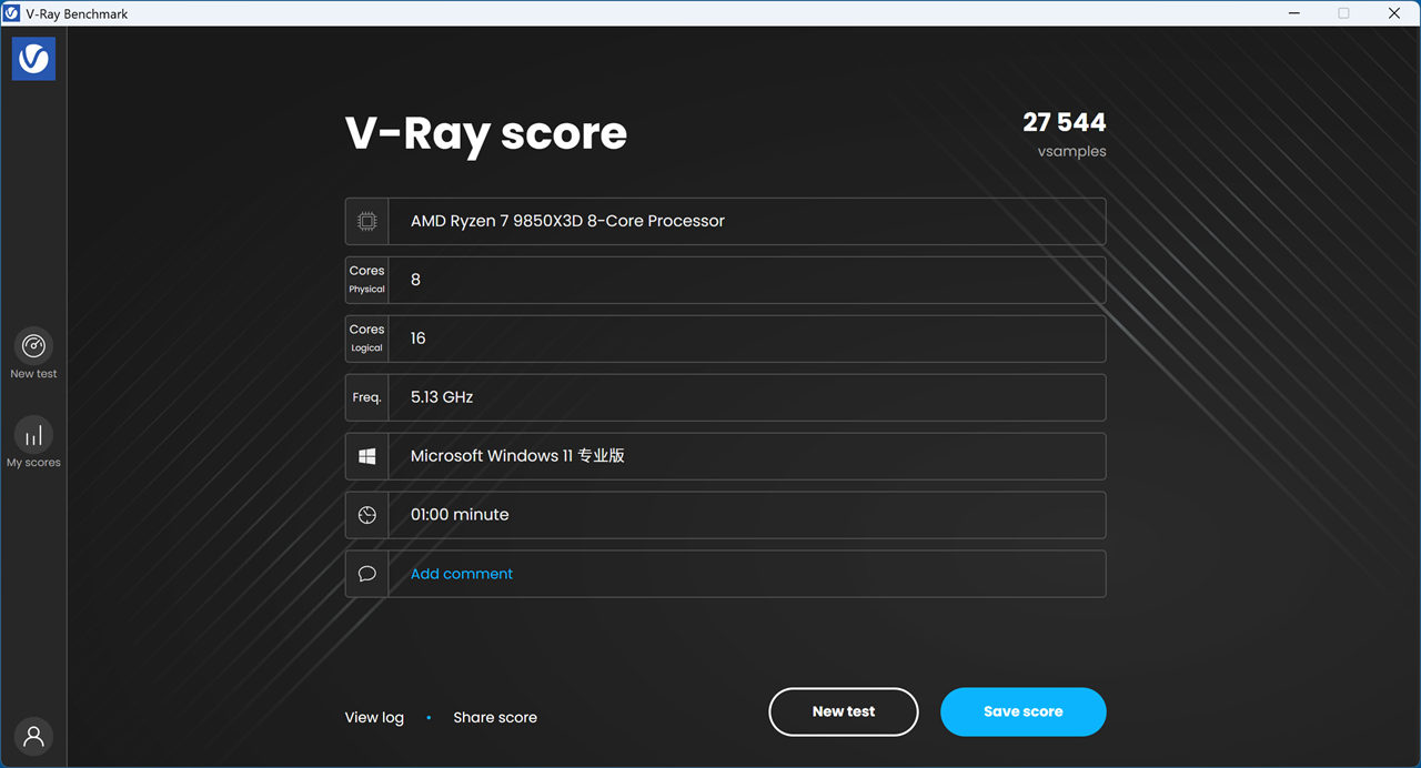 V-Ray CPU渲染基准测试。