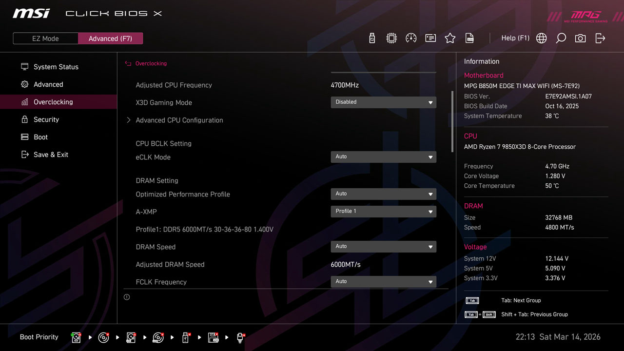 从测试结果来看,9850X3D在搭配微星MPG B850M EDGE TI MAX WIFI刀锋钛主板时,各项游戏测试表现都非常出色,能够完美释放出平台的潜能,和主流X870、X870E的跑分区别并不大,并且稳定性也非常不错,在测试过程中并未出现蓝屏、死机及帧率异常等状况。