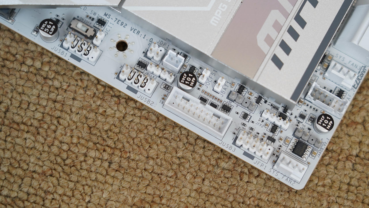 还有一部分接口位于主板的左下角,如前置USB2.0接口、前置USB3.0接口、ARGB接口等。