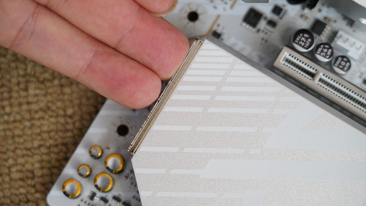 主板的M.2散热马甲采用了免工具拆装设计,轻轻一按即可完成拆装,十分方便。