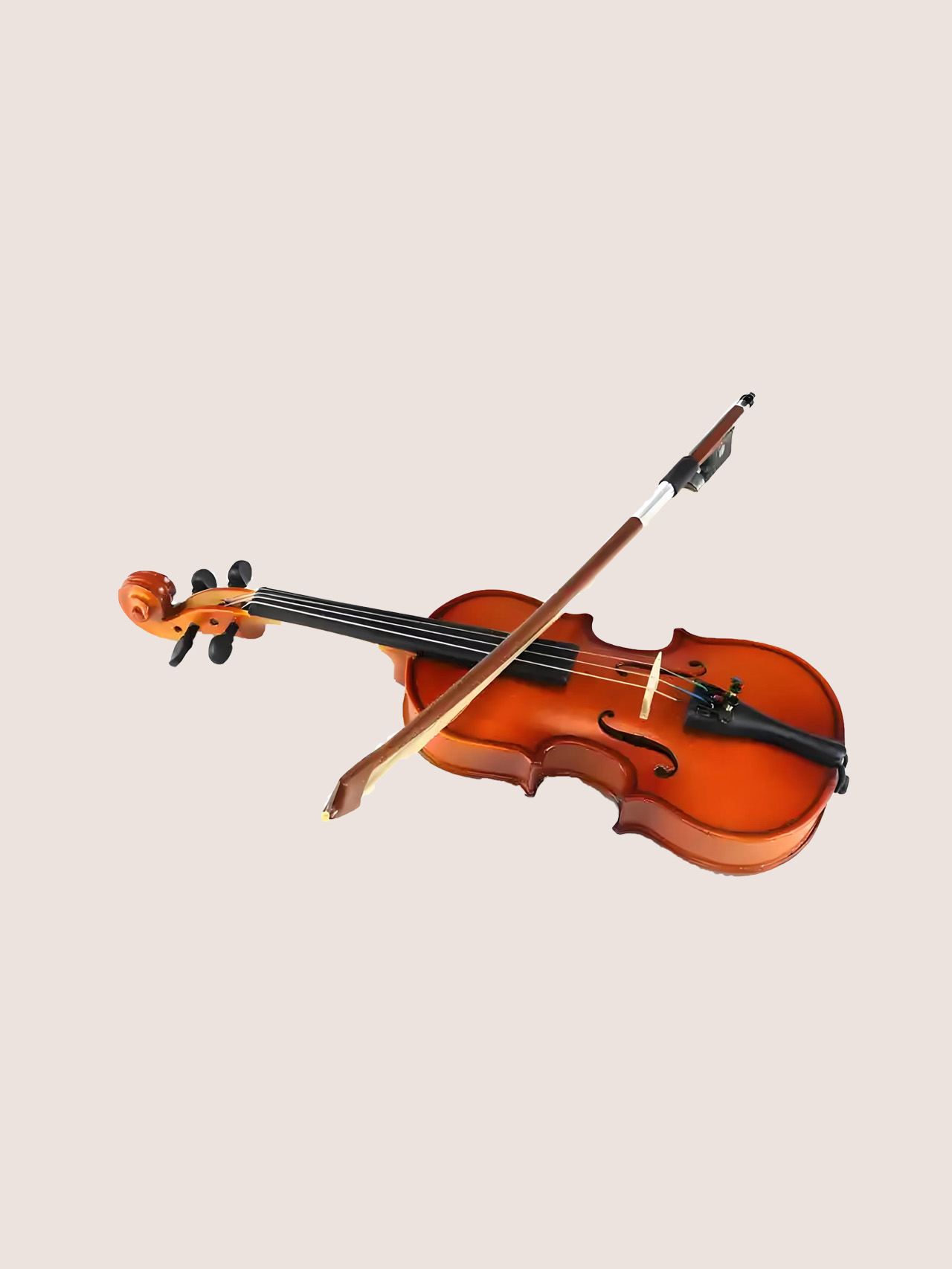 小提琴是一种有四根弦的弦乐器,靠弦和弓摩擦产生振动,进而通过共鸣箱(琴身)内的音柱将振动传导至背板,由这几部分产生的共振,发出和谐明亮琴音。据史料记载,最早的小提琴是由一位住在意大利北部城镇布里细亚名叫达萨洛的人制成的。同一个时期,克雷蒙纳城中的A·阿玛蒂也是小提琴制作的先驱。小提琴琴身(4/4规格)长约35.5厘米,由具有弧度的面板、背板和侧板粘合而成。面板常用云杉制作,质地较软;背板和侧板用枫木,红木,质地较硬。琴头、琴颈用整条枫木,指板用乌木。小提琴广泛流传于世界各国,是现代管弦乐队弦乐组中最主要的乐器。它在器乐中占非常重要的地位,是现代交响乐队的支柱,也是具有高难度演奏技巧的独奏乐器,与钢琴、古典吉他并称为世界三大乐器。