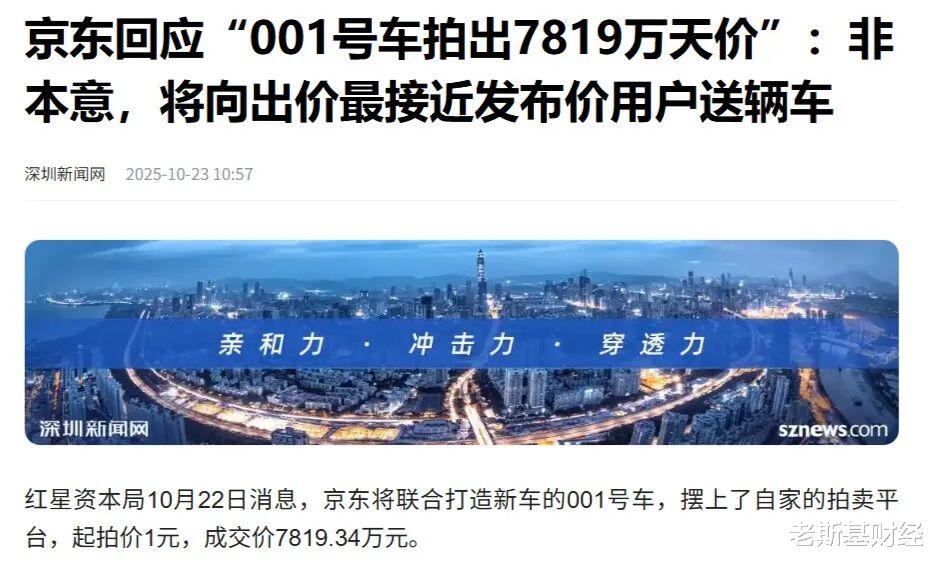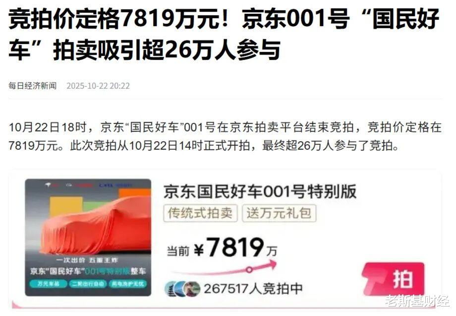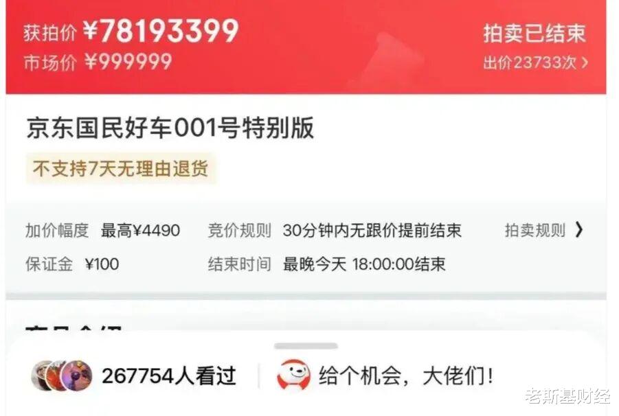 这两天,京东拍卖“国民好车”001号的事搞得很热闹。