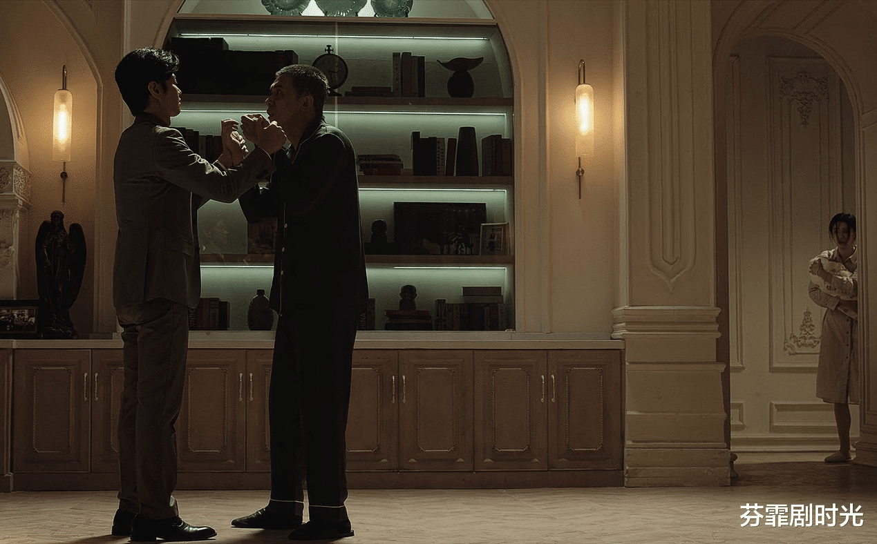 在镜头的角落里,有一个妇人抱着一个小婴儿,神态冷漠地看着屋子里的情况,这个妇人就是邱叶。