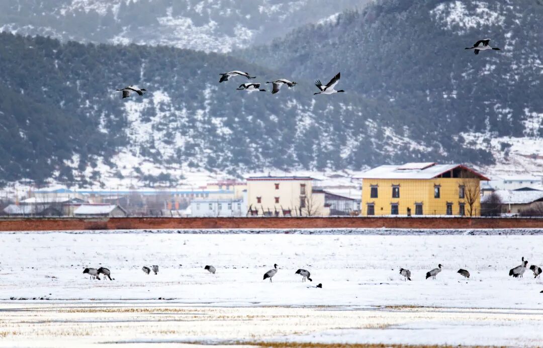 有候鸟与白雪相映成趣的纳帕海
