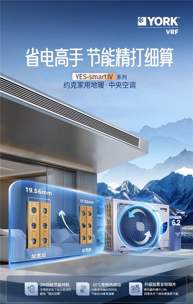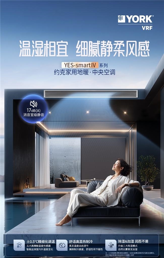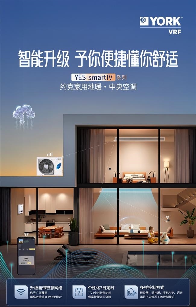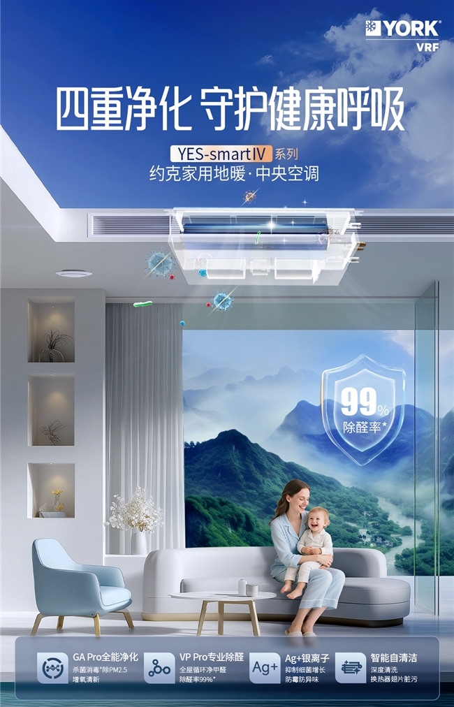 如何才能保持室内的凉爽与舒适?传统的空调虽然能制冷,但是长时间的冷风直吹关节容易受凉,而传统的空调制冷也造成了极大的能耗。其实,现代家庭需要的不是简单的温度调节,而是能够兼顾健康、舒适与节能的智慧解决方案。约克VRF中央空调YES-smart Ⅳ系列,不仅是一台一机多享受、“自由加载 跨界舒适”的现代科技利器,更像是默默守护全家人的舒适管家,用科技的力量传递着温度与关怀。