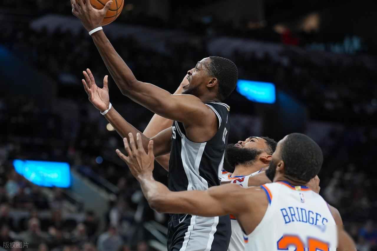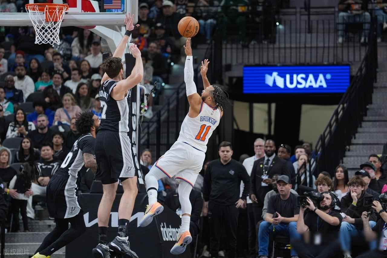 1月1日NBA常规赛开打,尼克斯带着三连胜的势头去找马刺,开场没多久布伦森就连续得分,一人拿下9分,帮球队打出10比3的开局,马刺那边慢慢反应过来,文班亚马接连扣篮,福克斯也一次次冲进内线得分,一口气连拿15分反超,尼克斯马上回应,一波11比0把比分拉回来,首节结束时他们还是以45比36领先。