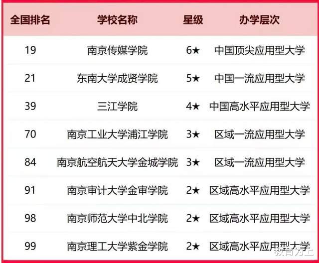此外,在南京市民办高校中,南京传媒学院、东南大学成贤学院居榜单前2名,是南京市综合实力较好的民办大学,分别居全国民办高校第19名、第21名。