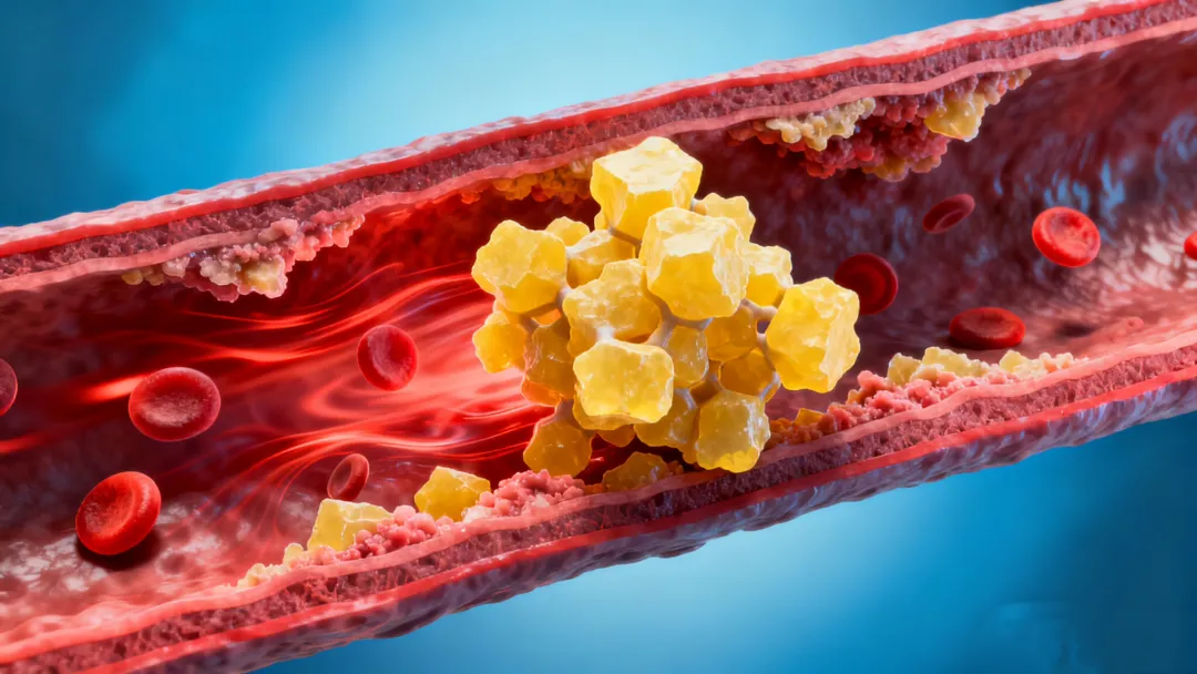胆固醇是动脉粥样硬化斑块的核心成分,当血液中存在过多胆固醇时,很容易造成血管堵塞,引发健康问题。