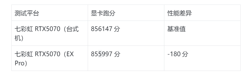 可能有人对零刻GTi15 Ultra这种迷你主机通过显卡坞外接独立显卡的性能会有疑问和顾虑,包括我在内,刚买回来,也是担心显卡的性能释放不完全,所以我把七彩虹的这张iGame RTX 5070火神显卡分别插在了我的台式机和零刻的这台迷你主机上,用娱乐大师跑了个分,看看在不同平台,他们的性能差距大不大,因为在之前买这台零刻的迷你主机的时候,官方就说过外接显卡可以无损传输。