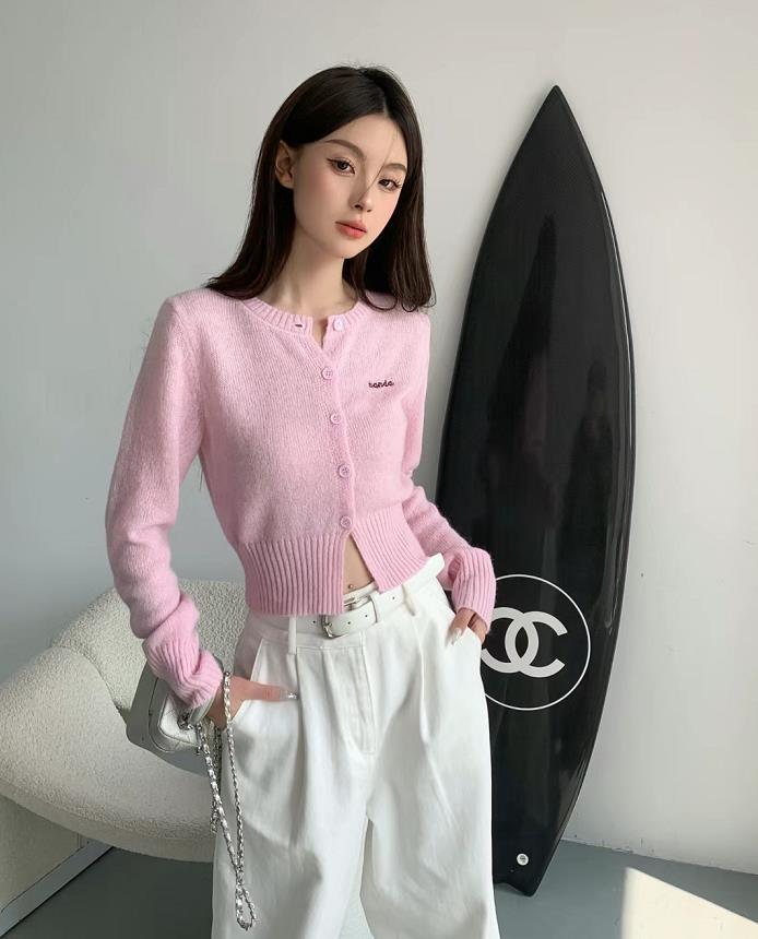 look4、粉色针织开衫+粉色缎面裙