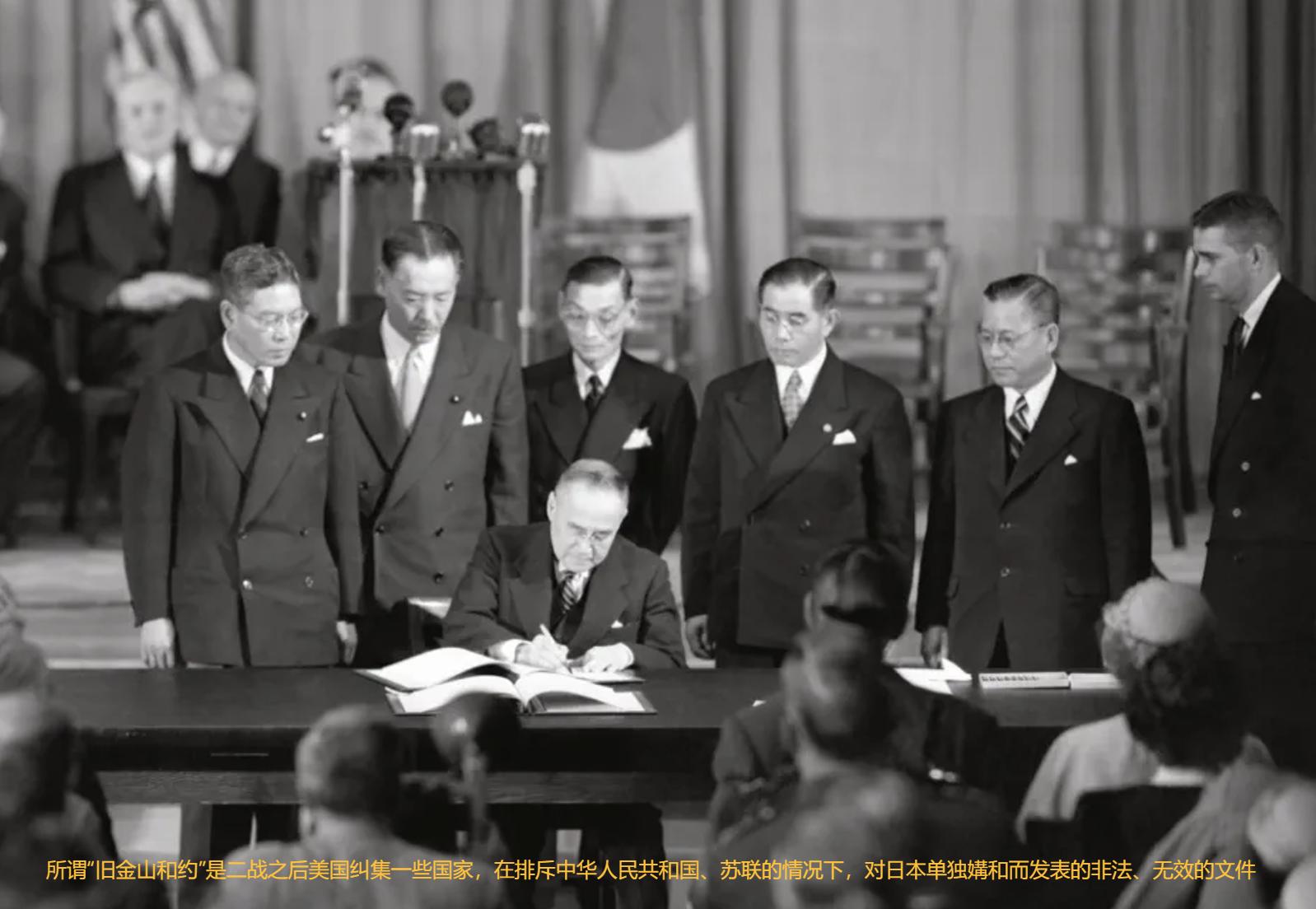 所谓的“旧金山和约”,在签署之初,将中苏等二战重要当事国排除在外,明确违反了《联合国家宣言》中,禁止与敌国单独媾和的条款,与国际法基本原则、联合国宪章都是背道而驰。