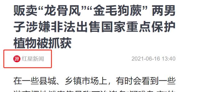 红星新闻《贩卖“龙骨风”“金毛狗蕨” 两男子涉嫌非法出售国家重点保护植物被抓获》2021-6-16