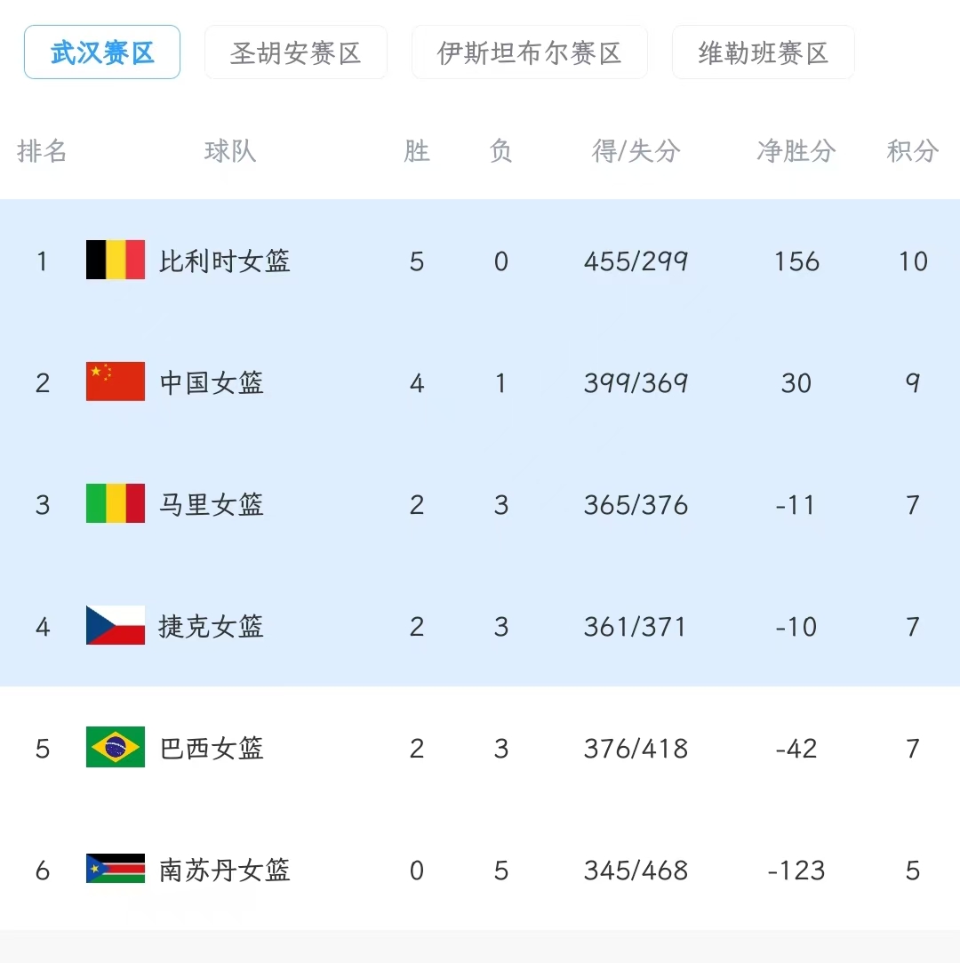 其余比赛,马里97-74南苏丹,比利时93-50捷克。本组比利时、中国、捷克、马里四队晋级世界杯,巴西第五与南苏丹携手遗憾出局。其他小组,韩国晋级,菲律宾出局,日本本轮大比分领先阿根廷,绝境下大概率也能晋级世界杯。
