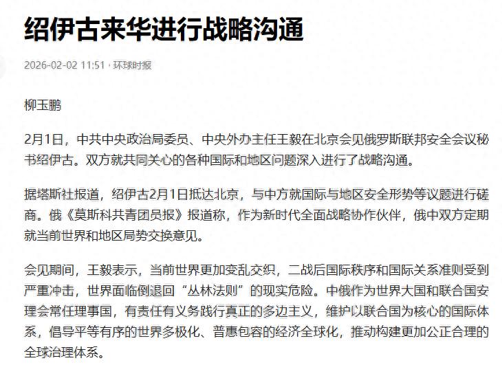 2月1日,绍伊古一个短平快的北京行,像武侠片里冲着目的直奔主题的角色,落地、见面、谈完、转身离开,不到24小时。